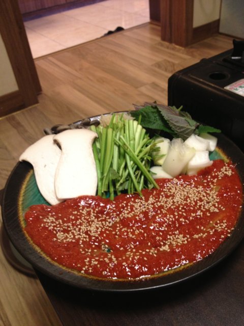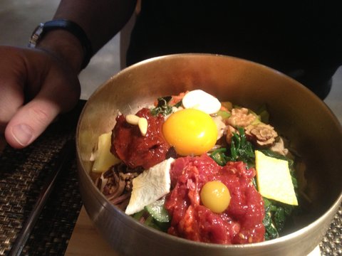 저 된장 비빔밥은 두부를 으깨어 넣어서 좀 꾸덕한데, 혼자 먹기는 많이 짬. 밥이랑 비벼먹음.