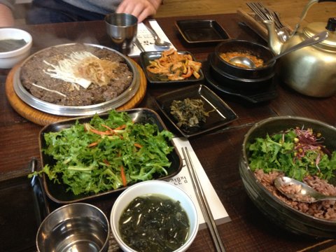 된장찌개, 김치찌개, 그리고 비빔밥.