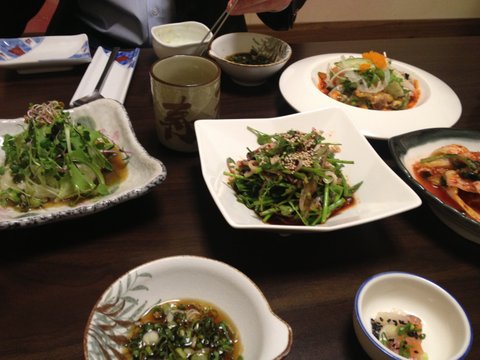 맨 위에 있는 건 복어 껍질무침, 오돌오돌하고 상큼한 드레싱에 곁들여 먹었음.