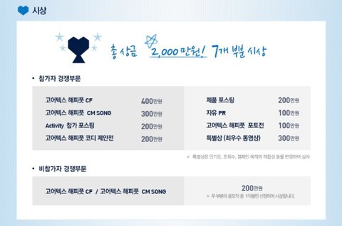 각 팀별로 7가지 미션 고어텍스 해피풋 CF, 해피풋 CM송, 제품 포스팅, 액티비티 참가 포스팅, 해피풋 코디 제안전, 포토전, 자유 PR 미션을 수행 하고 각 수행 미션마다 나중에 일등을 선정하여 총 상금이 2천만원의 상금을 준다고 하는데 도전 의욕 불끈불끈ㅋㅋ