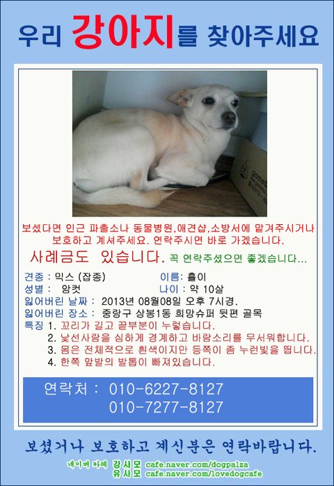 사례금도 있으니 제발 연락주세요 ㅠㅠ