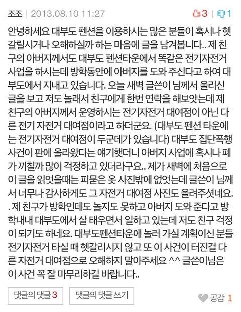 동조해주시고 위로해주시는 분들도 감사하지만 대부도 분들을 모두 통틀어 욕하지는 말아주셨으면 합니다.