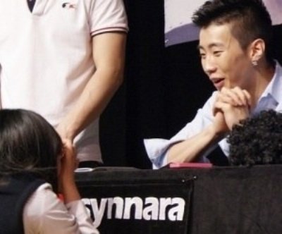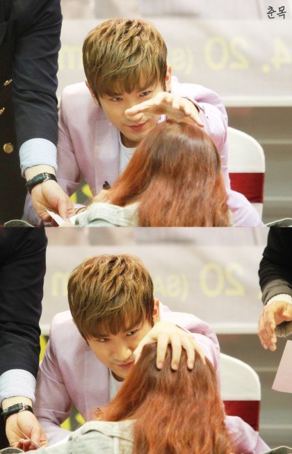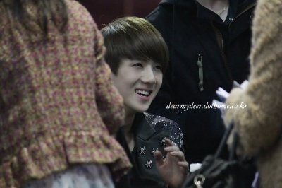 팬에게 활짝 웃어주는 아이돌