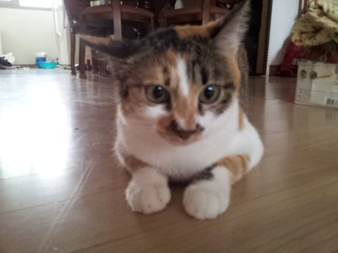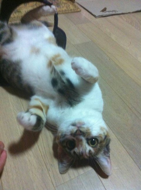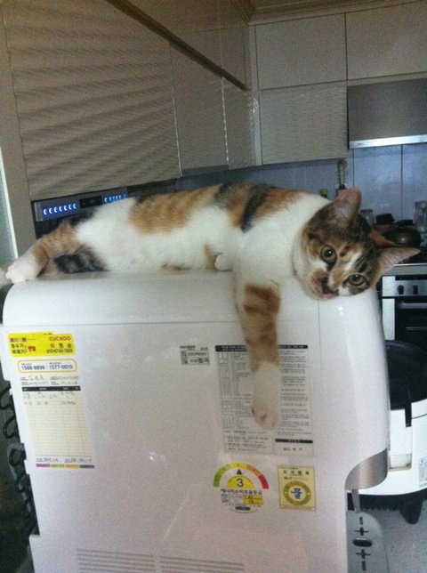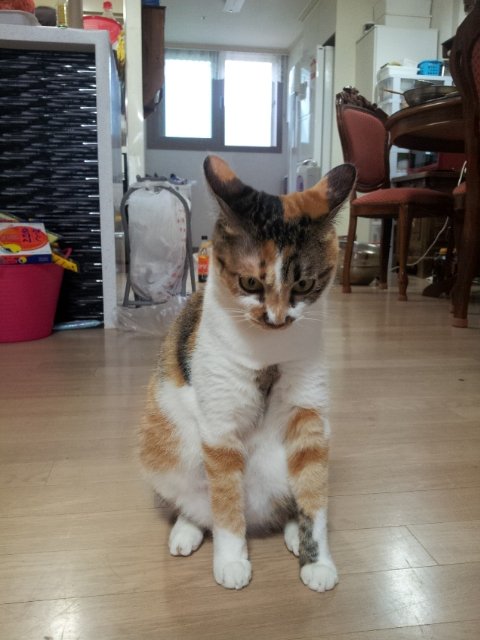 그래서 전 답답한 마음에 꿀밤을 한대 날렸습니다. 그러자 셀프는 놀랍게도 진격의 고양이가 되었습니다.