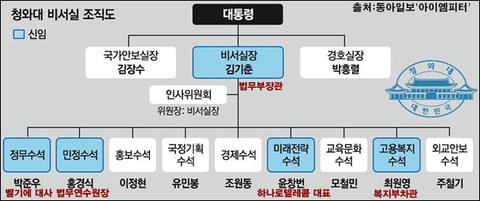 박근혜 대통령은 이번 청와대 비서관 인사 교체카드로 정당과 청와대를 조율하는 정무수석을 정치 경험이 없는 박준우 전 벨기에,EU대사를 임명했습니다. 이는 박근혜 대통령이 새누리당,민주당과의 협조가 아닌 본인의 강력한 의지로 정국을 밀고 나가겠다는 심사입니다.