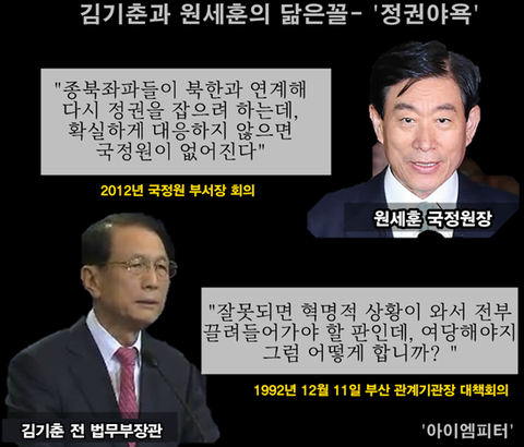 원세훈과 김기춘을 비교하면 그들에게는 공통적인 특징이 몇 가지 있습니다. 그중에 하나가 '북풍'을 조장해 권력을 유지하려고 했던 점입니다.