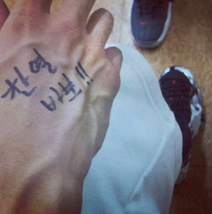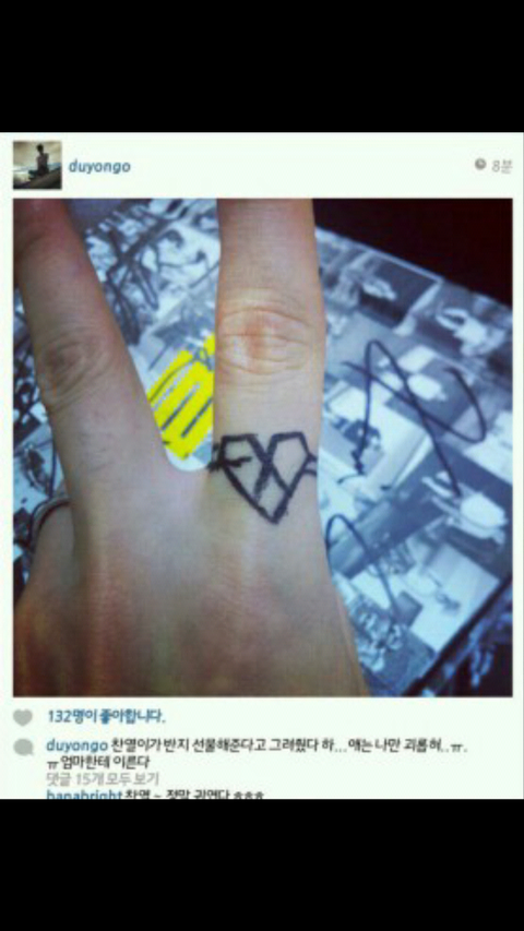 코디 손가락에 엑소반지를 서툴게 싸인펜같은걸로