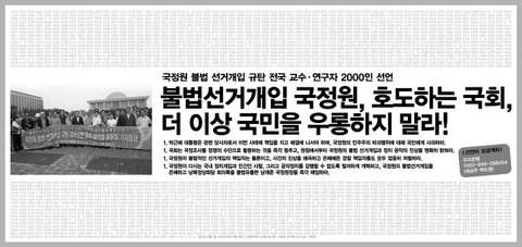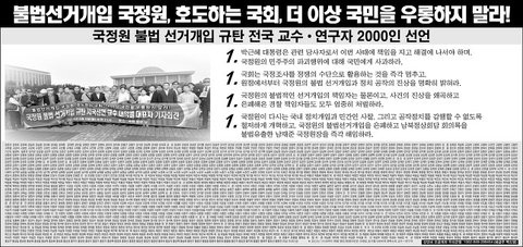 국정원 불법 선거개입 규탄 전국 교수 연구자 2000인 선언
