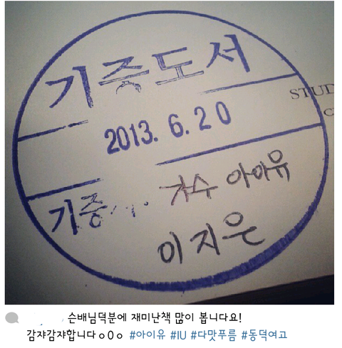 아이유는 조용히 후배들을 위해 도서구입 비용 명목으로 발전기금 1000만원을 기부했다.