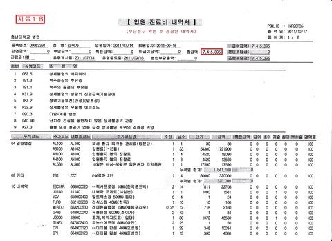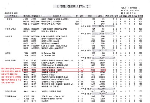 또한 제 모친의 손해보험사에 청구된 과거 2007~8년 3차례의 입원치료 당시의 진료비 명세서를 확보하여 살펴보니 1개월여의 1회 입원시마다 100여만원 이상의 진료비 허위,부당청구가 발견되었습니다. 물론 이는 재활치료를 직접 받은 제 모친과 당시 제 모친을 간병하며 재활치료를 지켜보았던 제 기억에 비추어 확인한 것이지만 상당 부분은 당시 제가 직접 작성한 간병일지에 비추어 증명될 수 있습니다.