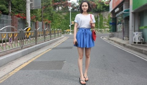 저기 있는 치마바지 파란색깔이랑 그 위에 티셔츠랑 같이 사려고 하는데 괜찬을까요??