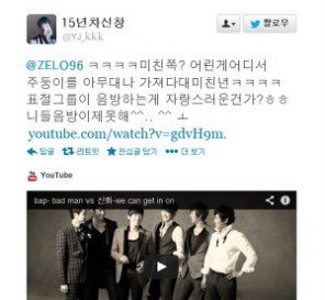 이정도까지할필요는없었자나 신창실망이다 직멘이라니 우리형들이 비에이피 팬한테 저따위로 직멘 받으면 기분 조카 좋겠네