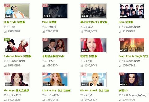 중국 최대 뮤비사이트. 으르렁은 역대 14위