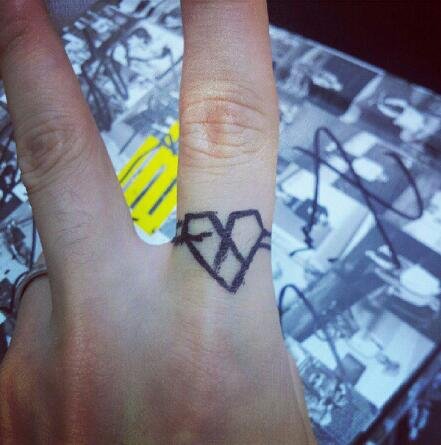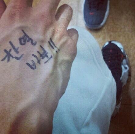 손에다가 엑소 하트 따개비 그림 그린 사진