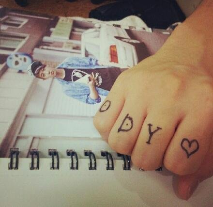 이니셜로 O D Y ♡ 이라고 썻는데 타투? 비슷하게 쓴거