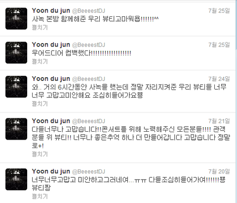 비스트 SNS 캡쳐본이 글내용의 절반이라 비스트채널에 올려요...
