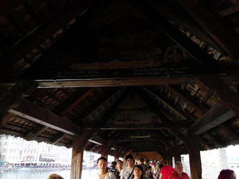 카펠교 내부에는 이렇게 천장을 쭉 따라 가면서 루체른의 역사를 그림으로 기록해놨어요ㅎ