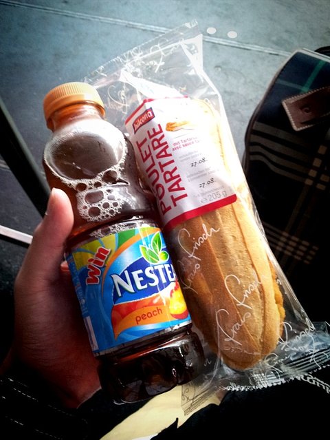 역에서 산 샌드위치를 꾸역꾸역 먹으면서 아침을 때우고 있는데...