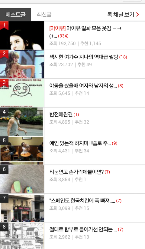 웃기는사진/동영상판에 1위글이랑 2위글이랑 차이가 심하다...대박...아이유요번 앨범나오면 또 좋은날이랑 너랑나 하루끝처럼 대박칠예감이...