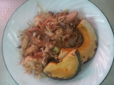 버섯 양파 닭가슴살 굴소스 마지막엔 가쓰오부시