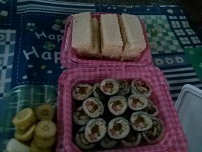 파프리카 말이 정말 맛났구여 유부초밥 굿.. 그리고 소시지 넣은 바게트 빵까지 정말.. 맛났습니다.