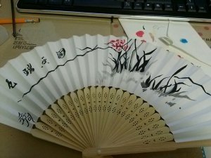 점심시간이 끝난뒤 제가 직접 그린 부채 추첨을 드렸습니다