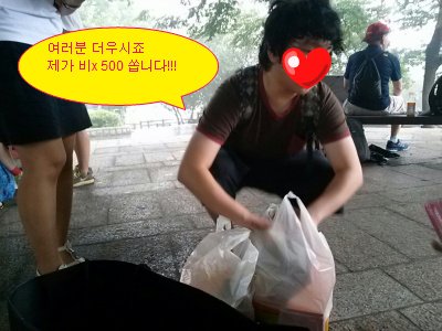 점심시간때 어느 학생분이 땀에 흠뻑 젖은채 많은분들에게 나누어 줄려고 비x500을 사오신 장면입니다. 훈훈한 학생분이였는데 [ 이분은 부채 당첨되신분입니다. ]