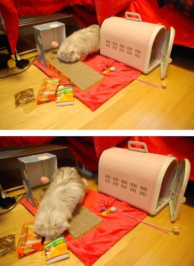 그렇게 충이는 자신의 사료와 몇개의 장난감과 함께 내품에 안겨 우리집에 왔고
