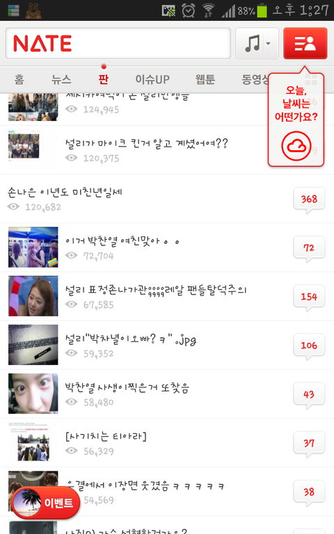 내가진짜이런글까지안쓰는데너무하지않냐심심해서들어오면다설리엑소 아니설리랑찬열?둘이잘되도둘이잘되는거지다지랄이야지랄은니들은썸도안타봣냐?잘되고태도문제는설리도잘못했고그렇다고애가니들한테피해를주냐?마녀사냥개잘하네엑소빠순이들설리를깔꺼면공카가서까진짜니들글때메좋은글다묻히자나제발공카로ㄲㅈ