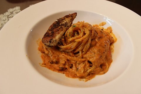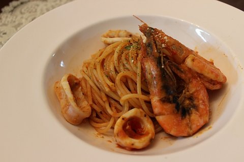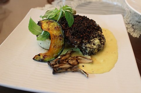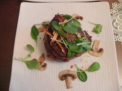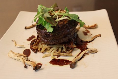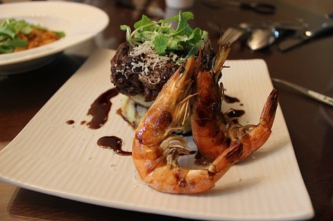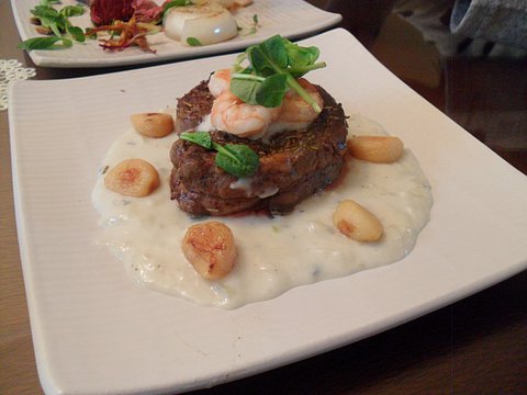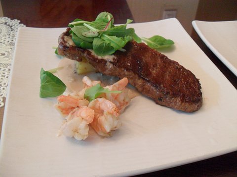 레드와인소스와 안심스테이크, 그리고 구운 새우