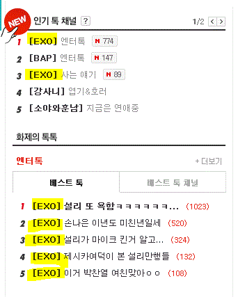 Q/ [EXO]채널이 인기가 많은건 엑소탓인가요 엑소팬탓인가요 엑소안티탓인가요?ㅋㅋ 걍 궁금함ㅇㅇ