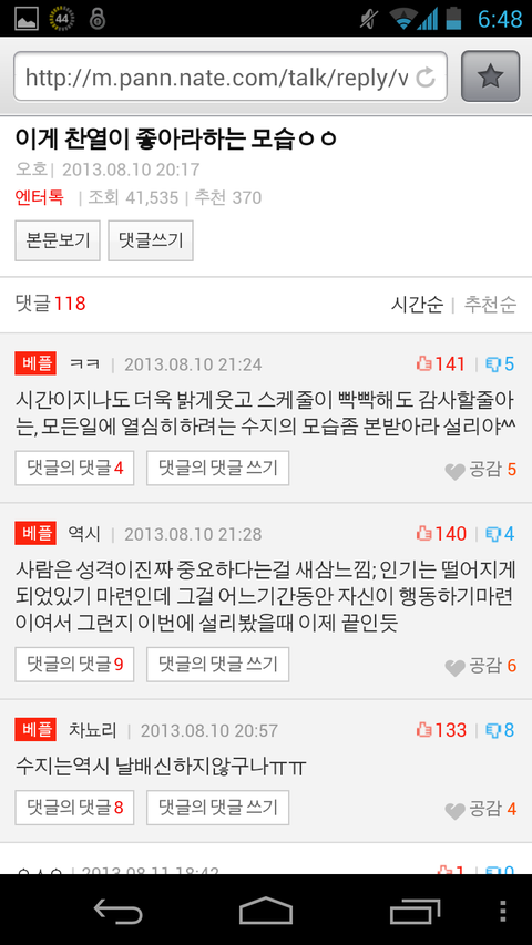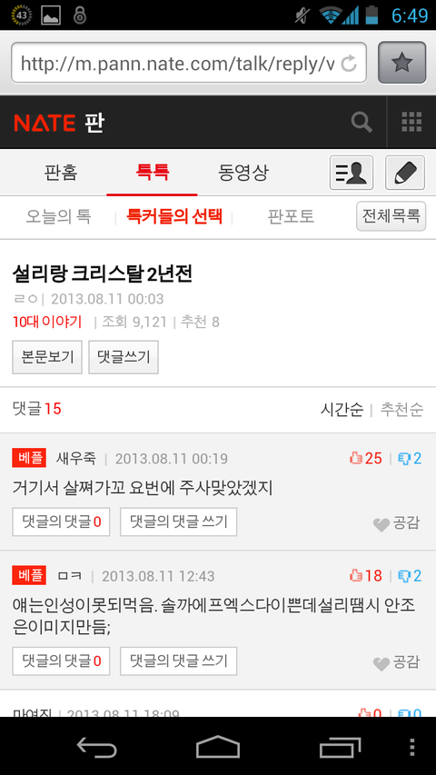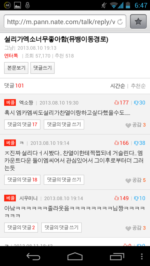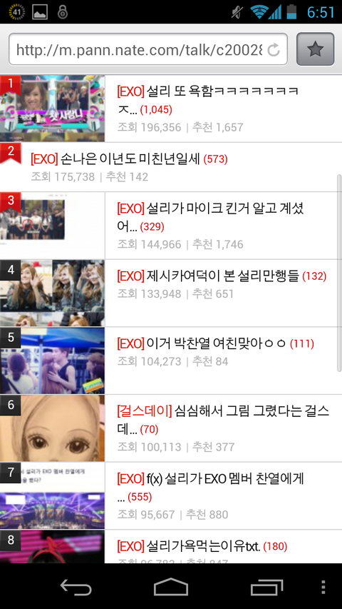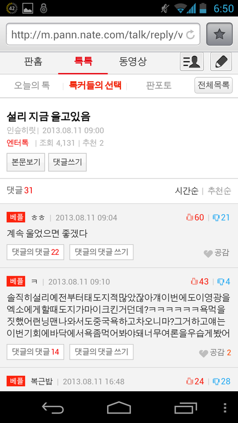 이게 요즘 톡거들의선택에 올라오는 글들인데 너무 심하잔아 설리가 이번에는 잘못해서 욕먹을 만큼 먹었으니 엑소팬분들이 이제 그만 욕하고.. 좋은글들을 올려줫으면 좋겟을거 같아서 이런글을 올리는데