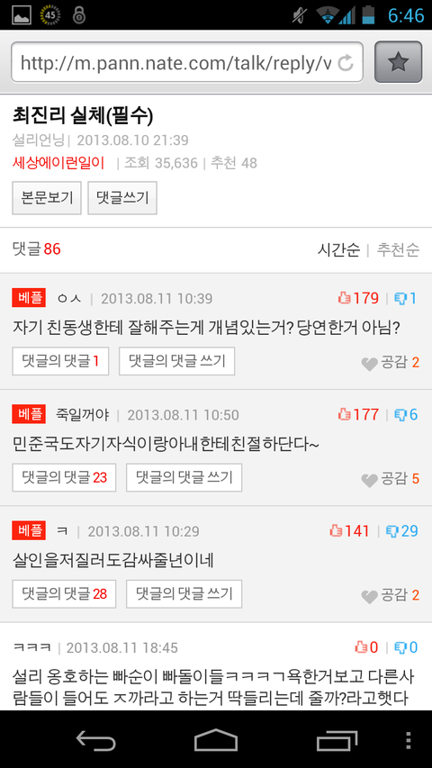 물론 설리가 잘못하긴 했는데 너무 일방적으로 욕하는거 같음..