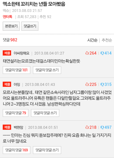 엑소팬들이니까 엑소 아끼는 건 이해가 가는데 엑소랑 엮이는 연예인들을 하나같이 왜 마녀사냥을 해?
