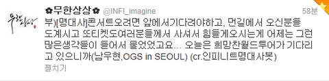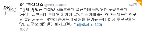 그냥 둘은 인피니트 기다릴게 들고 있는 거 멍하니 쳐다보고 눈가 촉촉 해지고..