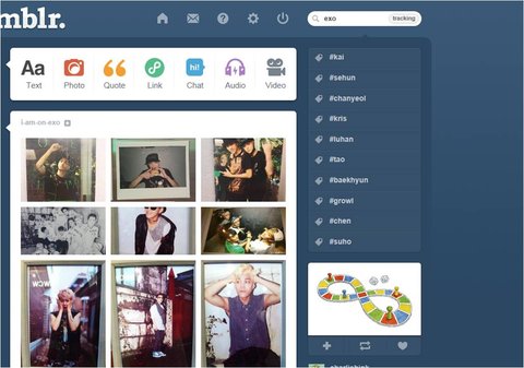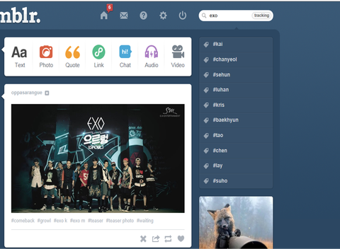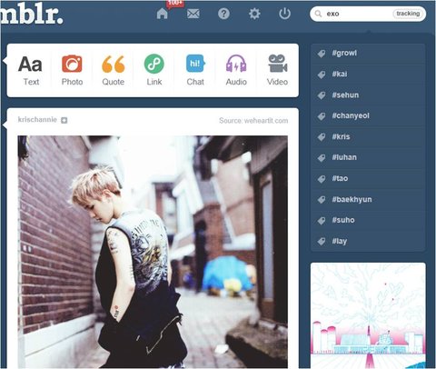 텀블러라는 유명한 사진블로그같은 사이트가 있는데 엑소외국팬들은 거의 여기 이용함.