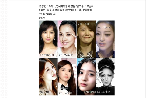 이번에는 이어지는판으로 사람들이 뽑은 여 아이돌 외모 급과, 성형외과의사들이뽑은