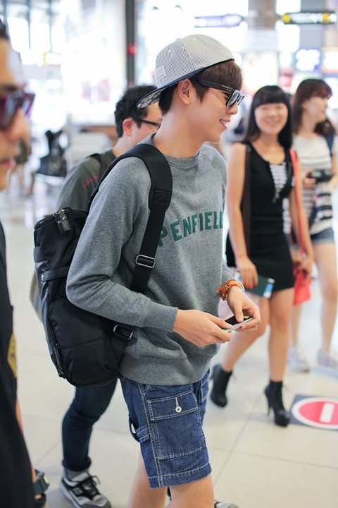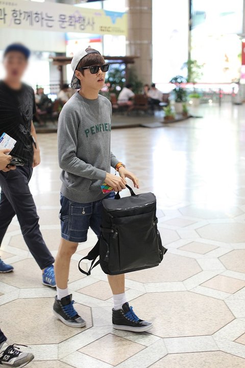 거기에 블랙 백팩으로 깔끔하게 마무리한 그의 패션!