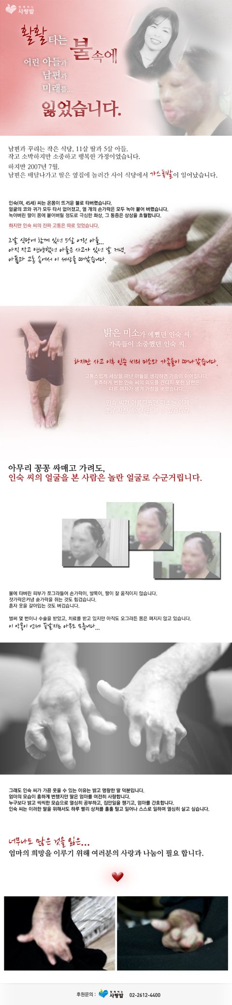 인숙씨는 뜨거운 불에 온몸이 다 타버렸습니다..