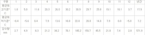 연 평균기온 역시 12도로 서울특별시의 연 평균기온 12.2도와 흡사하다.