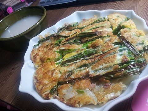 비오는 날의 제 단골메뉴 돼지고기파전입니다 ㅋㅋ