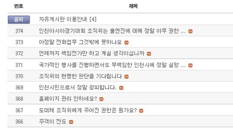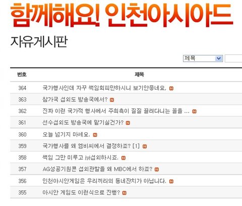 그리고 인천아시안게임 홈페이지에서 팬들의 항의가 계속되고 있죠.
