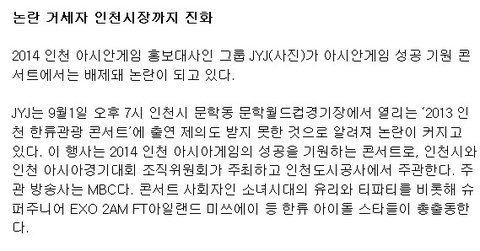 jyj는 인천아시안게임 한류콘서트에 출연할 수 없다는거예요.