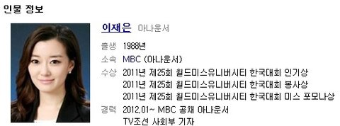 월드미스유니버시티 출신이 이재은 아나운서!