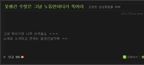 이 더럽고 발정난 하등한 수캐들아ㅡㅡ;