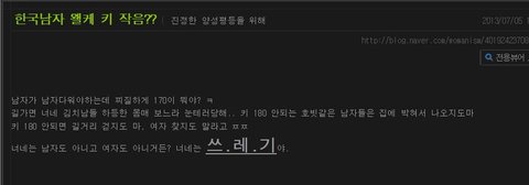 키 180 안되면 길거리 걷지도 마, 여자 찾지도 말라고 ㅉㅉ
