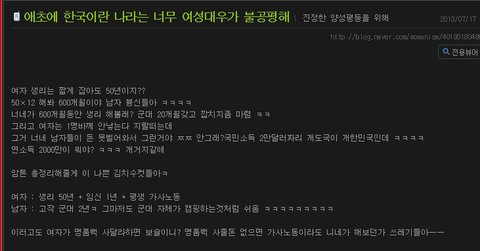 [애초에 한국이란 나라는 너무 여성대우가 불공평해]
