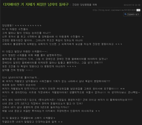 양성평등? ㅋㅋㅋㅋㅋㅋㅋㅋㅋㅋㅋ