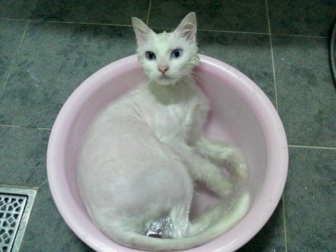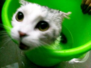 판을 보다가  어떤 집사님이 대야에 물받아서 야옹이를 넣어놨더니