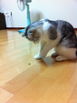 저렇게 고민하던 미남인 결국 앞발로 저 벌레를 쳤고